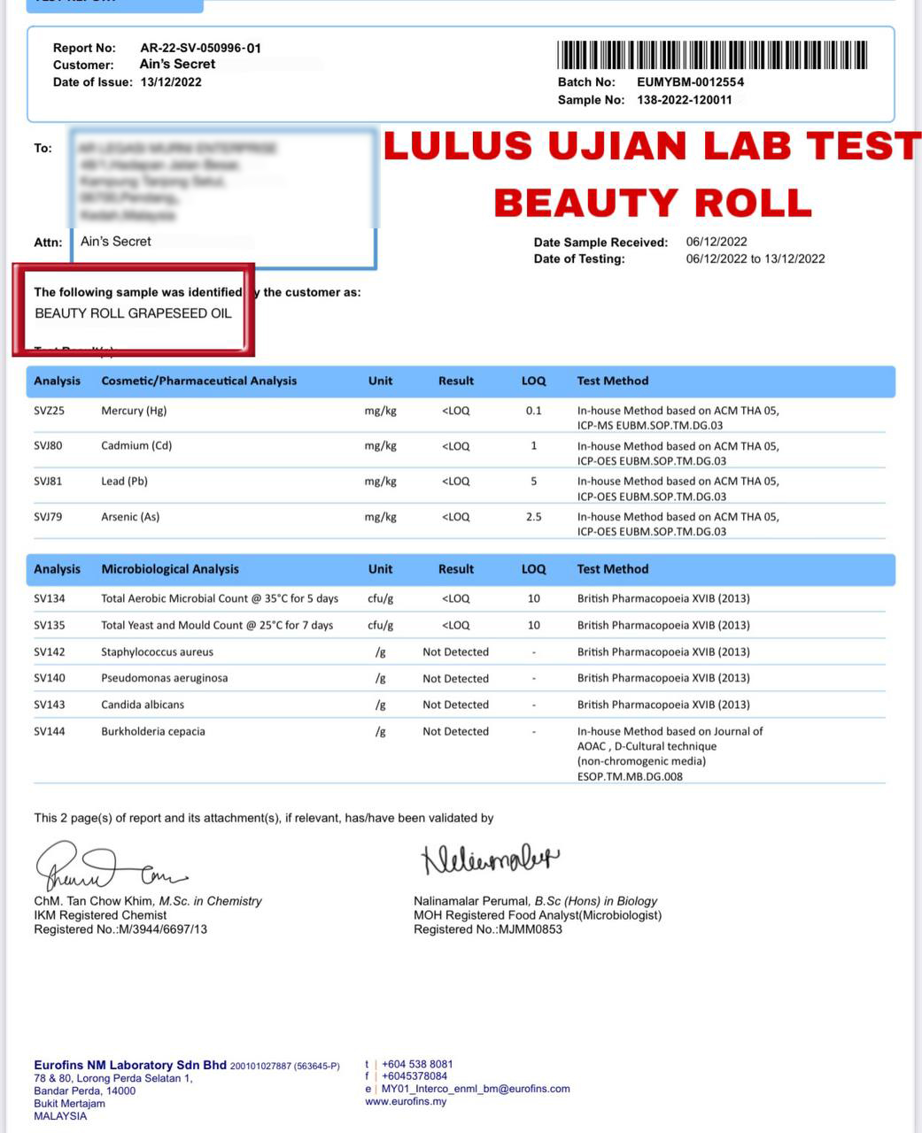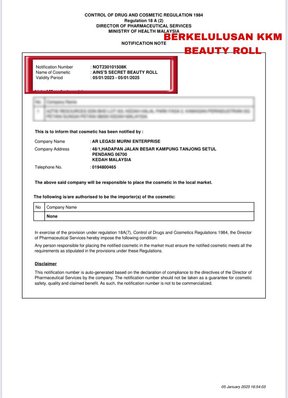 - Beauty Roll Grapeseed Oil mempunyai gabungan Minyak Anggur yang asli, Habatussauda dan Niacinamide.